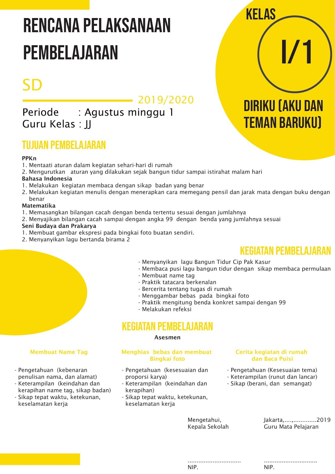Contoh RPP Inspiratif SD Kelas 1 Tahun 2020.